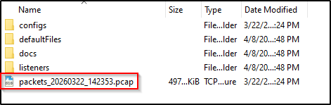 شكل (9): صورة للملف الذي يتم انشاءه بواسطة عمل run للتطبيق بلاحقة .pcap الذي يتم فتحه على wireshark.