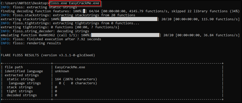 - FLOSS: أداة قادرة على استخراج النصوص التي يحاول المبرمج تشفيرها داخل الكود (Obfuscated Strings).