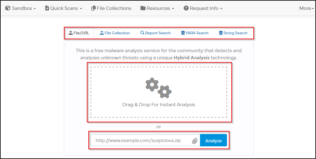 - Hybrid-Analysis: خدمة توفر تشغيلاً تلقائياً للملف وتقدم تقريراً سريعاً عن سلوكه (سجل الملفات، العمليات، والشبكة).