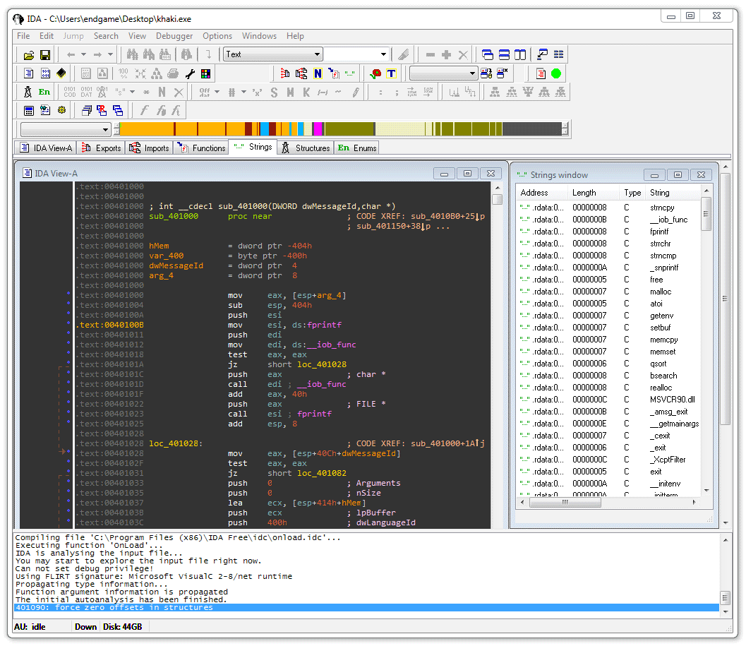 شكل (1): واجهة تطبيق IDA Freeware.